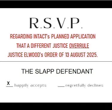 SLAPPs are Strategic Lawsuits Against Public Participation. These malicious lawsuits chill free speech and stifle the whistleblower's prerogative, indeed moral imperative, to duly report wrongful, prohibited conduct. SLAPPs are used to curtail free speech and harass whistleblowers by necessitating that they expend personal financial resources, in defence of meritless and malicious SLAPPs. The two (2) duplicate SLAPP civil actions that INTACT has prosecuted against its own Insured is a stark case in point, and it is urged that INTACT refrain from filing a similar SLAPP against its own Privacy Officer, Helen Cameron, who had reported to the OIPC the findings of her internal affairs investigation, which confirmed that an INTACT Claims Manager and her subordinate had engaged in wrongful, prohibited claims practices! As detailed herein, by the filing of two (2) duplicate, arrantly meritless SLAPP actions against its Insured, INTACT has doubly exploited and doubly abused the judicial system, in its costly crusade to curtail the freedom of speech rights of the Insured whistleblower, who had filed a fact-based, formal complaint against INTACT with the BC Human Rights Tribunal, regarding INTACT's bad faith, discriminatory claims practices. The purpose of INTACT's SLAPP litigation is to exhaust the Insured's personal financial resources, such as to compel him to withdraw his whistleblower complaint. As it is essential public policy to protect whistleblowers' rights to report wrongful activity from the chilling effect of a SLAPP, the province of British Columbia has enacted legislation that provides a process for courts to identify a claim as a SLAPP and summarily dismiss it.