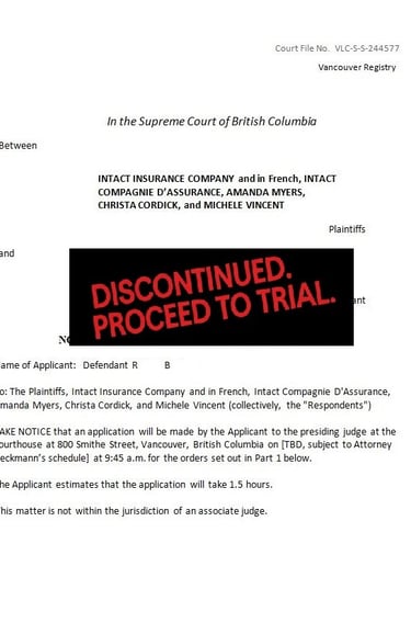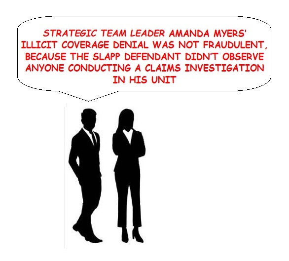 However, Attorney Jain's brilliantly focused, nascent approach to the SLAPP litigation incorporates the procedural reality that the SLAPP Defendant faces no such burden, since his legal rights arise from acceptance of his claims submission, by Plaintiff Amanda Myers, processed by Plaintiff Michele Vincent, and presented to the Provincial court by Plaintiff Christa Rae Cordick, irrespective of any judicial determination of his status as an insured, or named insured!