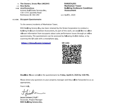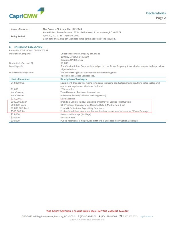 The Tenant has recently contacted the following professionals, guardians of the Strata Owners' legal and contractual interests, as confirmed by the INTACT Insurance Contract and Section 155 of the Strata Property Act,