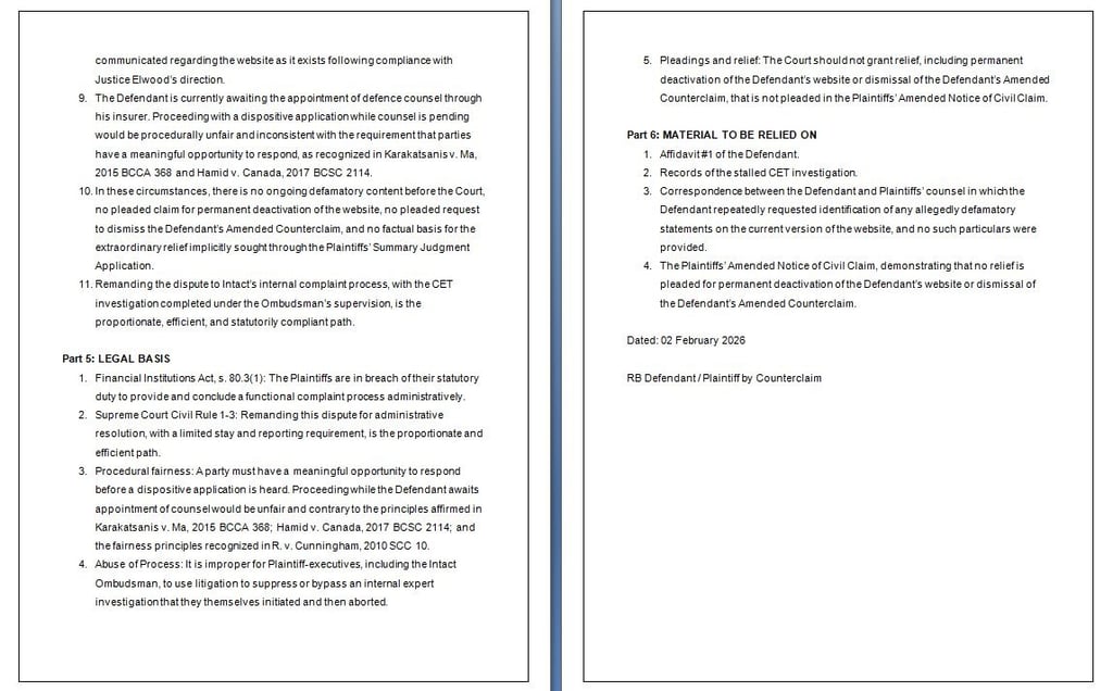 INTACT's Amended Notice of Civil Claim is procedurally incongruous with your stated intent to seek a Final Order/Summary Judgment on this matter.