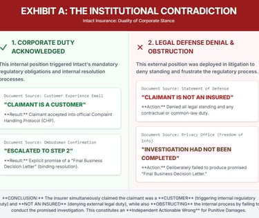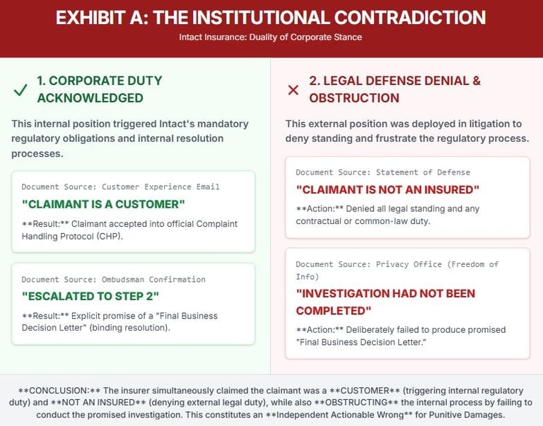 By engaging the claimant in a formal, multi-step "Complaint Protocol" that promises a comprehensive review, while internally deciding to perform no investigation and legally denying their very status, INTACT demonstrates a malicious and arbitrary pattern of conduct.