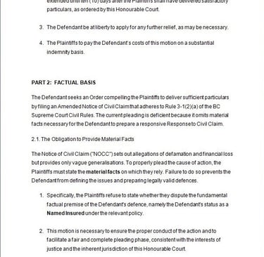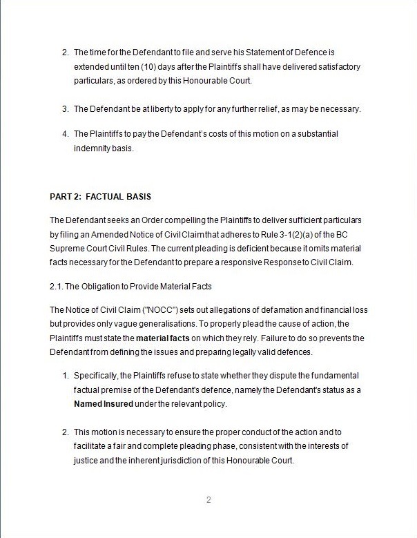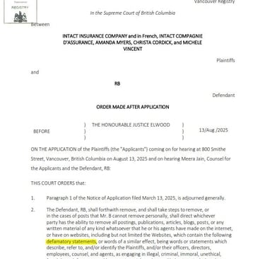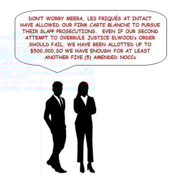 SLAPPs are Strategic Lawsuits Against Public Participation. These malicious lawsuits chill free speech and stifle the whistleblower's prerogative, indeed moral imperative, to duly report wrongful, prohibited conduct. SLAPPs are used to curtail free speech and harass whistleblowers by necessitating that they expend personal financial resources, in defence of meritless and malicious SLAPPs. The two (2) duplicate SLAPP civil actions that INTACT has prosecuted against its own Insured is a stark case in point, and it is urged that INTACT refrain from filing a similar SLAPP against its own Privacy Officer, Helen Cameron, who had reported to the OIPC the findings of her internal affairs investigation, which confirmed that an INTACT Claims Manager and her subordinate had engaged in wrongful, prohibited claims practices! As detailed herein, by the filing of two (2) duplicate, arrantly meritless SLAPP actions against its Insured, INTACT has doubly exploited and doubly abused the judicial system, in its costly crusade to curtail the freedom of speech rights of the Insured whistleblower, who had filed a fact-based, formal complaint against INTACT with the BC Human Rights Tribunal, regarding INTACT's bad faith, discriminatory claims practices. The purpose of INTACT's SLAPP litigation is to exhaust the Insured's personal financial resources, such as to compel him to withdraw his whistleblower complaint. As it is essential public policy to protect whistleblowers' rights to report wrongful activity from the chilling effect of a SLAPP, the province of British Columbia has enacted legislation that provides a process for courts to identify a claim as a SLAPP and summarily dismiss it.