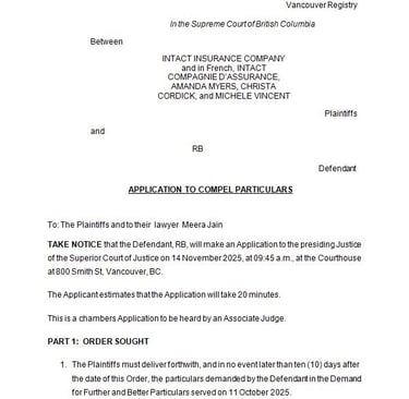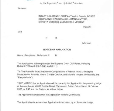 However, Attorney Jain's brilliantly focused, nascent approach to the SLAPP litigation incorporates the procedural reality that the SLAPP Defendant faces no such burden, since his legal rights arise from acceptance of his claims submission, by Plaintiff Amanda Myers, processed by Plaintiff Michele Vincent, and presented to the Provincial court by Plaintiff Christa Rae Cordick, irrespective of any judicial determination of his status as an insured, or named insured!
