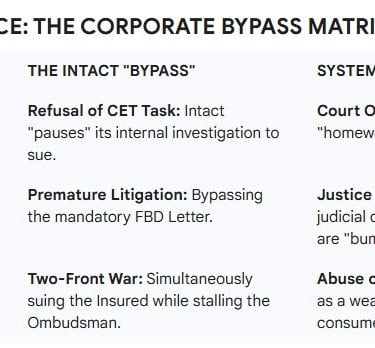 The final act is the systemic entrenchment of this malicious finding. The Ombudsman's refusal to issue an exculpating letter, based on INTACT's original and self-serving "not insured" designation, is critical evidence that: