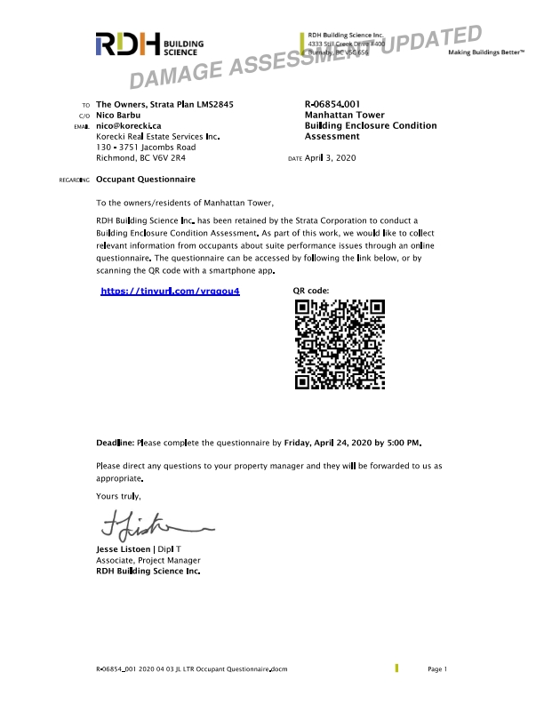 Interested Owners of the Strata LMS2845 community have begun to access the full insurance "tower" funded for 27 years. As policyholders under the Strata Property Act, all Owners are entitled to comprehensive coverage that has been historically suppressed. Please refer to the below letter of 22 July 2021 from former Property.Manager Alex Korecki.