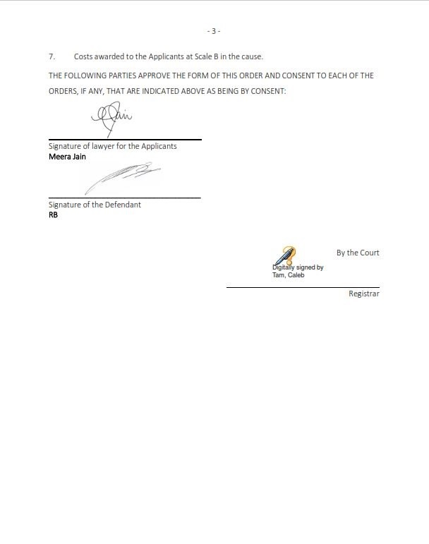 As to the requisite elements of a cause of action for the tort of abuse of process, in Oei v. Hui the B.C. Court of Appeal clarified that the tort has the three (3) elements, that are in abundance in the instant civil action: (i) a collateral and improper purpose; (ii) an overt act in furtherance of the collateral and improper purpose; and (iii) resulting loss. Stay tuned, as the cases wind their way to trial, at which Amanda Myers and Michele Vincent will be examined, under oath!