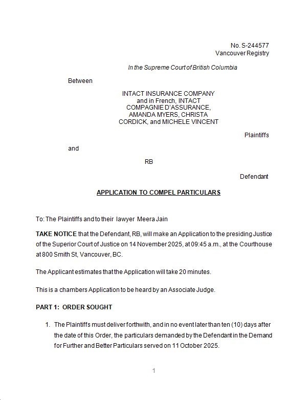 1.(a) In a letter of 30 September 2021, INTACT's Claims Manager, Amanda Myers defined RB's status as a Named Insured.