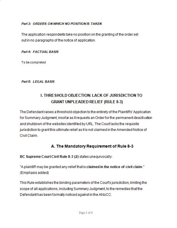 The image to the left is a true copy of INTACT's Response to the SLAPP Defendant's Counterclaim.