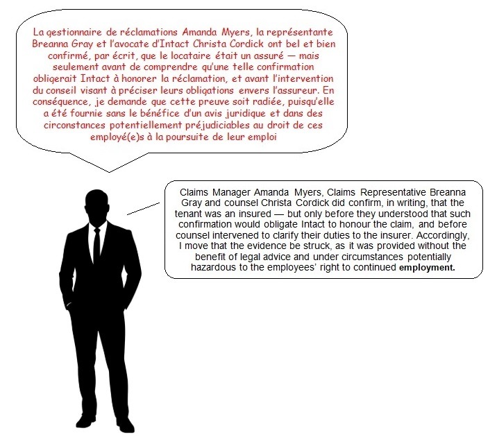 The strength of this claim rests on the fact that INTACT is liable for substantial damages, regardless of the outcome of the underlying contractual dispute; i.e. insured (named insured) or non-insured but a recognised claimant.