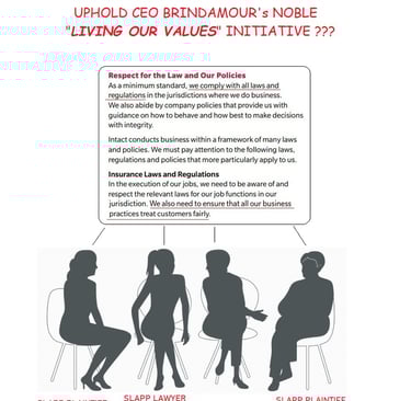 Regarded as "insurance experts" lawyers, within INTACT, Christa Rae Cordick, Casey Goodrich and Nigel Beckmann are held to an ultimate legal standard, against the backdrop of their collusive, systemic betrayal of the interests of both INTACT, Whitelaw-Twining, the Provincial and Supreme Court, as well as INTACT's policyholder Strata Corporation LMS 2845 and the named insured SLAPP Defendant.