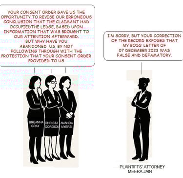 To her credit, the Attorney assigned to the INTACT file, Ms. Meera Jain, took the initiative to protect her Clients' legal exposure, face and reputational interests, by her preparation of the below, Consent Order, which the SLAPP Defendant approved on 15 December 2025. For the past over one month, despite the SLAPP Defendant's emails, there has been neither communication from Attorney Jain, nor explanation for the delay.