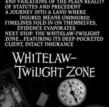 As the result of Whitelaw-Twining's "insurance and defamation law expert" Nigel Beckmann's unethical tactics, as documented herein, he has guided his Clients, INTACT, Amanda Myers, Christa Cordick and Michele Vincent into abusive of process SLAPP litigation, without a defamatory cause of action. His refusal to join the SLAPP Defendant's efforts to advance the litigation to trial is a protective posture.